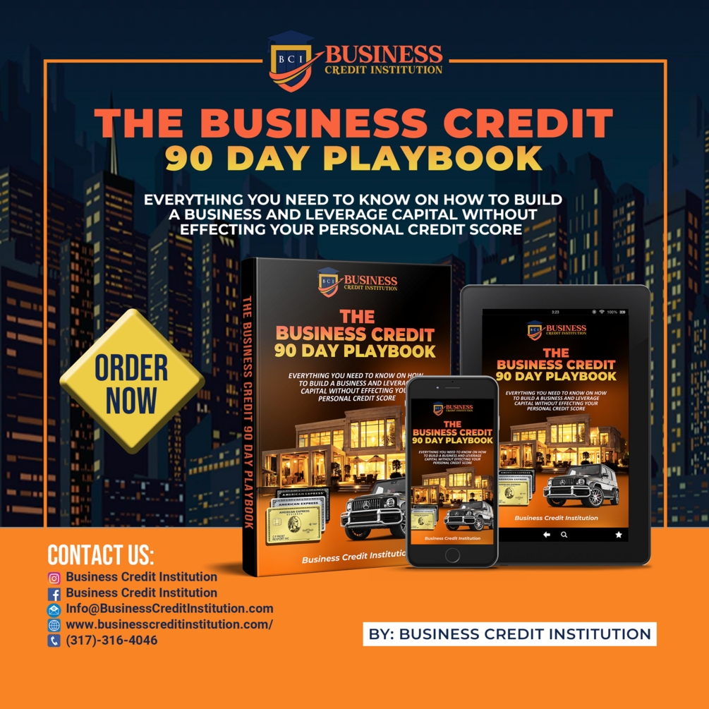 In the Business Credit Institution 90 Day Business Credit Playbook we'll teach you how to build business credit within 90 days by using your EIN. In this D.I.Y eBook we will discuss what is business credit, how to set up a business for funding successfully (step-by-step), and guide you on building business credit with fast resources.
